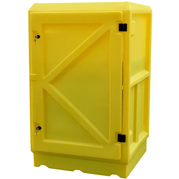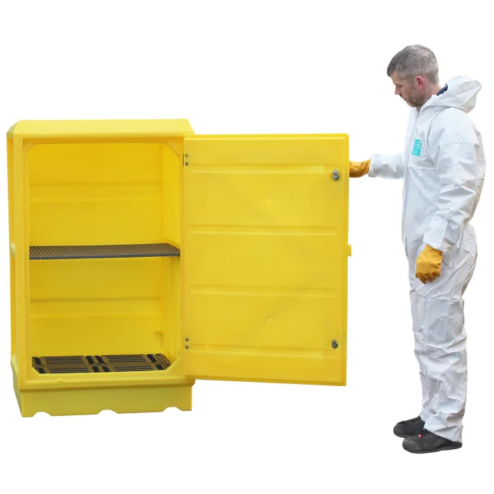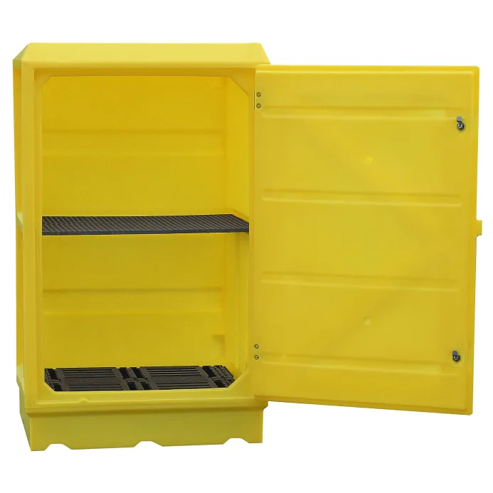 Шкаф с полкой PSC5 представляет собой прочный шкаф с закрывающейся на петлях дверью и полкой, идеально подходящий для хранения канистр, контейнеров, бутылей или другой тары.